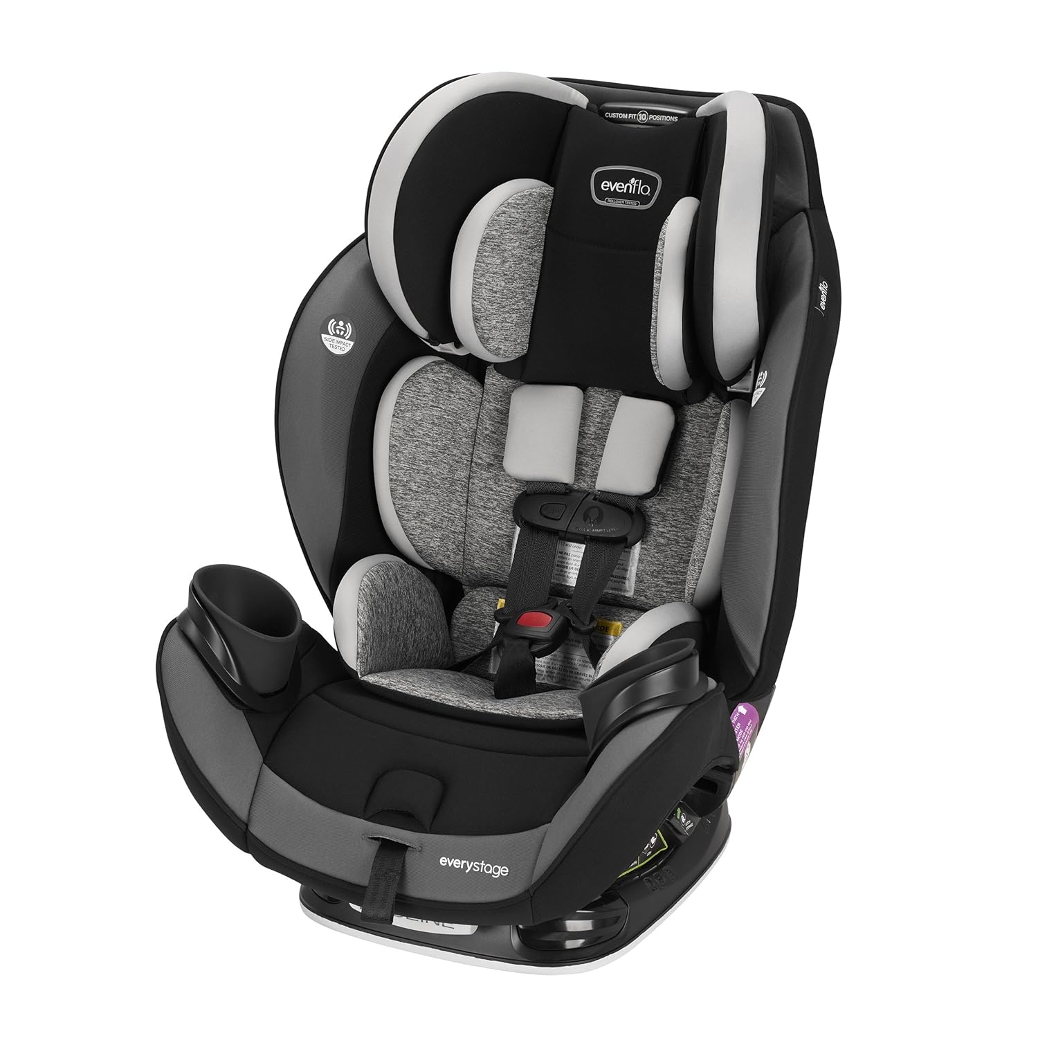 The Evenflo Symphony DLX All-in-One car seat is a great choice for parents who want a seat that lasts. It starts as a rear-facing car seat for babies as small as 5 lbs, then transitions to a forward-facing car seat, and finally becomes a booster seat for children up to 110 lbs. I love that this seat grows with your child, so you don’t need to buy multiple seats.